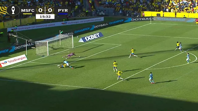 ومرر وليد الكرتي كرة بينية لزميله محمد عاطف “قطة” على يمين منطقة الجزاء بالدقيقة (4) ليرسل كرة عرضية وصلت لإبراهيم عادل الذي سدد الكرة ولكن فقدت قوتها بالارتطام في دفاع الفريق الجنوب أفريقي لتصل إلى حارس المرمى سهلة وسط مطالبات باحتساب ركلة جزاء لصالح بيراميدز.