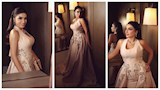 فستان ذهبي بفتحة ساق.. هاجر الشرنوبي تتألق في مهرجان القاهرة السينمائي